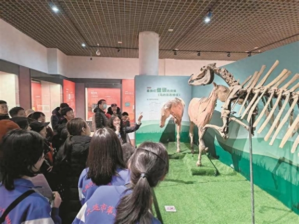 来自鞍山的游客李女士举着手机,对着一件"大连马"的骨骼细细拍照。她兴奋地对记者说:"原本是来大连看海的,没想到在黑石礁海边先看到了那个巨大的'大连马'艺术装置,萌翻了。走进博物馆才发现,那个可爱的大家伙居然真有'老祖宗'在这儿!"这种从海边浪漫到硬核科普的无缝衔接,让众多市民游客收获了美好的体验。