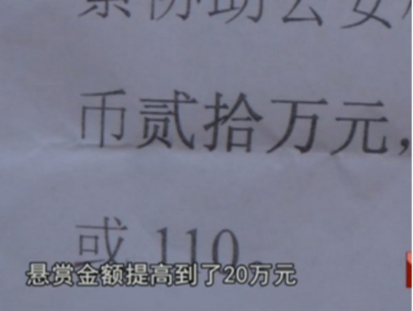 5月5日,警方发布公告,悬赏5万元征集线索,然而却一无所获,等到5月8号的时候,警方加大悬赏力度,将5万元增至了20万元。