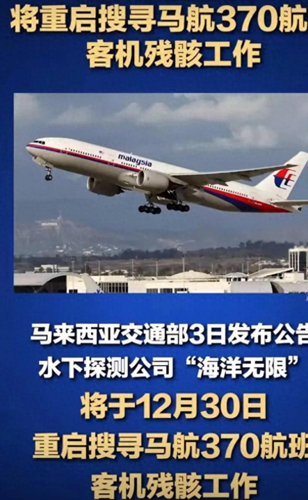 马来西亚交通部发布公告,马航MH370航班客机残骸搜寻工作于12月30日重新启动,当地时间当日正式进入实地执行阶段。水下探测公司"海洋无限"的调查船"Armada 86 05"号已抵达印度洋搜寻区,开始部署水下设备进行声学扫描,标志着这起备受关注的空难搜寻工作进入新的阶段。