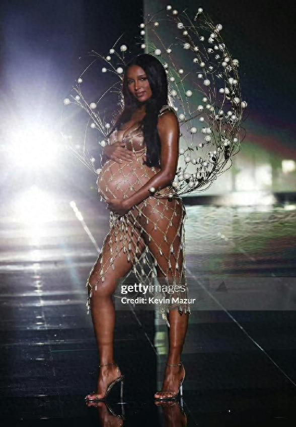 谁能想到35岁的小茉莉Jasmine Tookes挺着9个月孕肚,踩着20cm高跟鞋就杀上了T台?