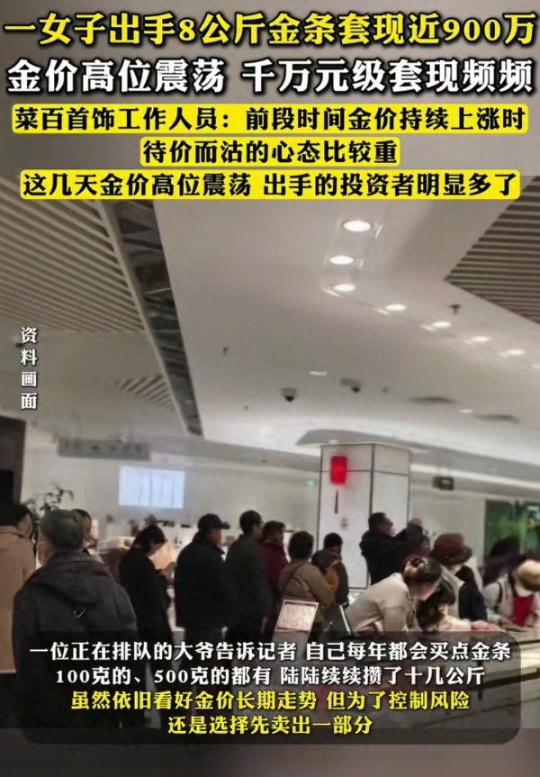 2月10日在北京菜百首饰总店,王女士的一笔黄金交易成了现场焦点:她一次性出手8公斤金条,最终套现近900万元,这波操作也让不少人看清了当下黄金市场的现状。
