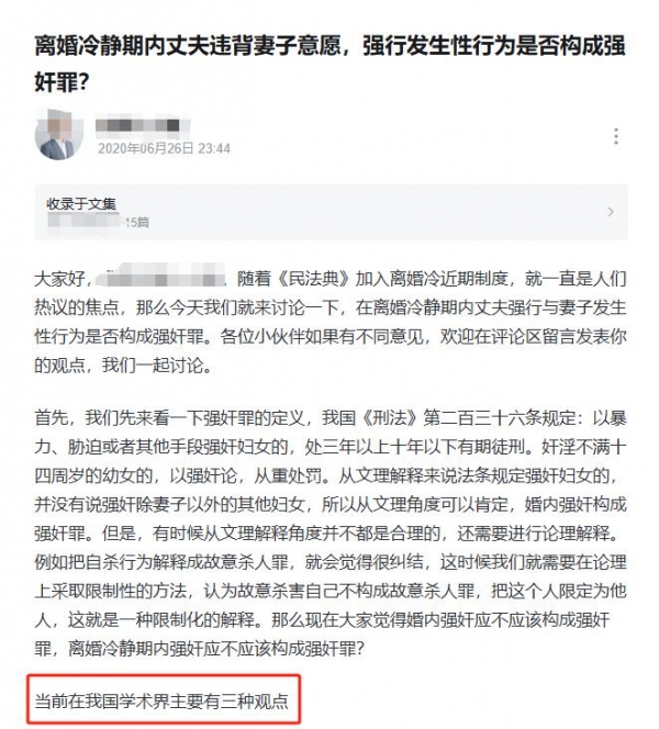 毕竟"婚内强奸"这个话题一直是一个法律上的灰色地带,不少法律人都曾经剖析过,观点可谓五花八门。
