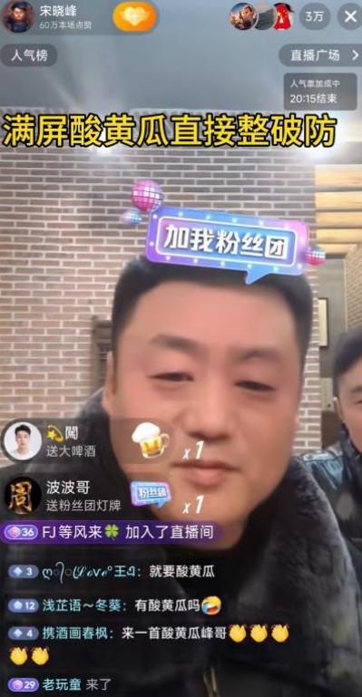但还是免不了受影响,比如老赵的徒弟宋晓峰,照常直播却被"酸黄瓜"刷屏。