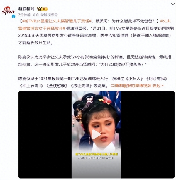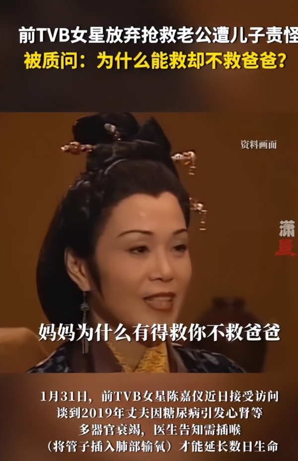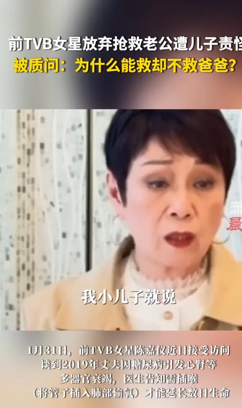 当医疗决策从冰冷的病历本蔓延至家庭的餐桌,一场关于生死、痛苦与亲情的战争便悄然打响。前TVB女星陈嘉仪近日在访谈中披露,2019年丈夫因糖尿病引发心肾等多器官衰竭,医生告知需通过"插喉"(将管子插入肺部输氧)才能勉强延长数日生命。面对这道选择题,79岁的她颤抖着签下"拒绝抢救",却换来儿子的当场质问:"为什么能救却不救爸爸?"这道裂痕,至今未能愈合。