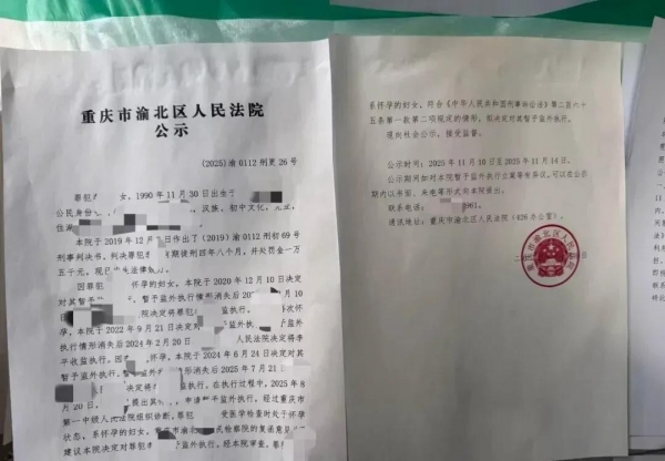 这次还特意由重庆市第一中级人民法院组织了医学检查,确认她确实处于怀孕状态。检察院也看了材料,建议法院同意。渝北区法院就在2025年11月10日到14日做了公示,让大家监督。现在记者打过去电话问,那边说公示期早结束了,别的事不方便讲。