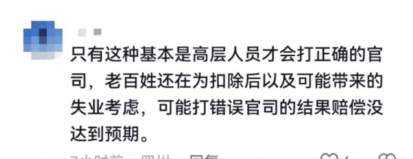 "只有这种基本是高层人员才会打正确的官司,老百姓还在为扣除后以及可能带来的失业考虑,可能打错误官司的结果赔偿没达到预期。"