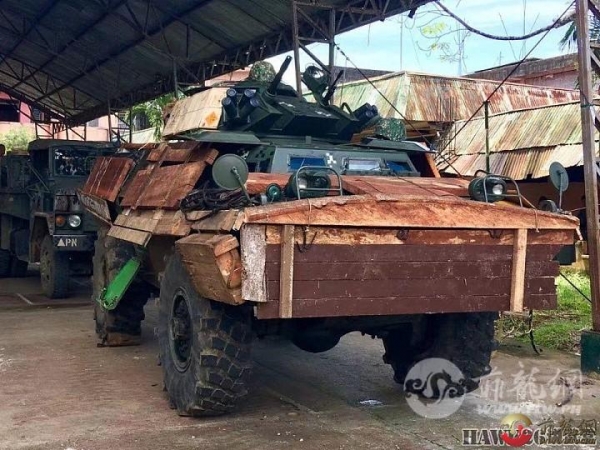 ▲菲律宾陆军在内战中也曾用木板捆绑装甲车