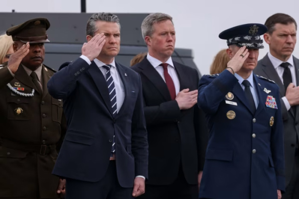 美国国防部长赫格塞思和美国陆军部长德里斯科尔(佩戴红领带者) 资料图