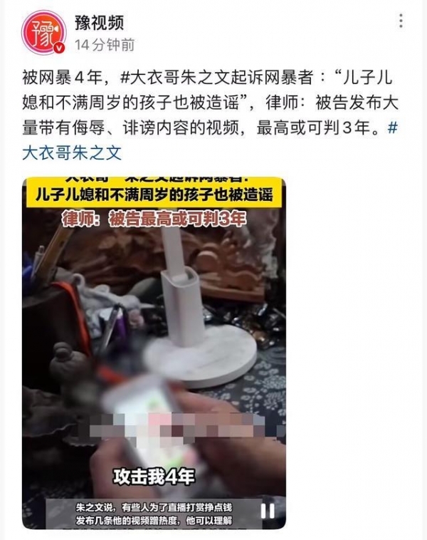 最近有个事挺解气的--那个在网上连续辱骂、造谣他一年多的孙某某,终于被判了。六个月实刑,四个月缓刑,罪名是侮辱和诽谤。大衣哥说,"法律是公平的",这话听着挺心酸的。