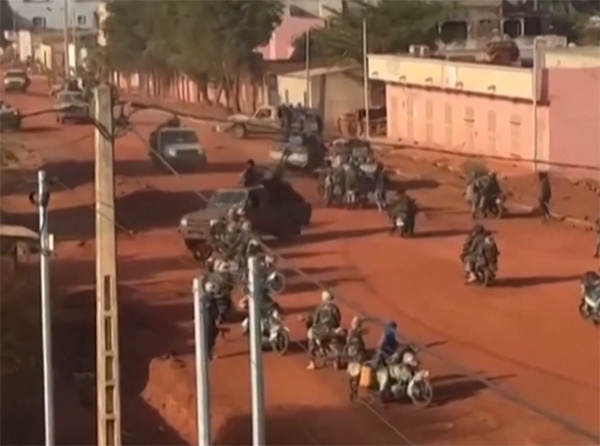 当地时间4月25日,马里军事重镇卡蒂附近出现的武装人员 视频截图