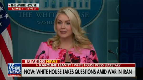 当地时间3月30日,美国白宫发言人莱维特答记者问。 视频截图