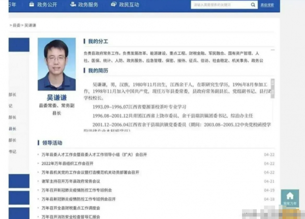 万年县连夜修改吴谦谦的简历,只留下了一个简略版。原本吴谦谦的回应还可能会站得住脚,但这种行为,不得不网友们对这进行各种猜想。