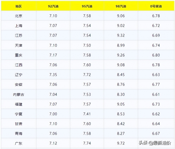 今天92号汽油,95,98汽油与0号柴油报价