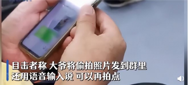 网友寻机瞅了老头的手机屏幕,看到他的手机屏幕上出现一双穿着裙子的腿,很显然这正是老头刚刚在现场拍摄到的图片。