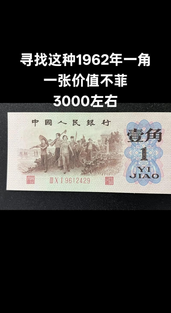 在第三套人民币收藏体系中,1962 年 1 角纸币(简称 "621 角")堪称 "小面值大价值" 的典范。它并非单一版别,而是包含背绿水印 1 角(背水 1 角)、背绿无水印 1 角(背绿 1 角)、背棕 1 角等多个品种,其中背水 1 角因存世量不足 1 万张、带空心五角星水印,成为三版币 "币王",全品拍卖价达 178 万元;即便品相破旧的背水 1 角,回收价也能达 4000-8000 元。这种 "面值与价值的巨大反差",核心源于 "短暂流通 + 版本稀缺 + 历史特殊性",彻底打破了 "面值决定价值" 的传统认知,成为收藏市场中极具传奇色彩的品种。