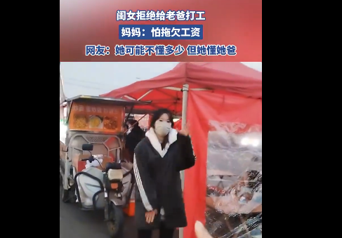 据视频显示,自家给女儿开20元一小时,舅舅家开10元一小时,女儿拒绝在自家打工却选择在隔壁舅舅家打工。妈妈说女儿是怕被自家老爸拖欠工资。