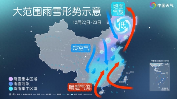今天(12月22日),我国大部地区持续升温模式,东北、华北等地迎来数九时节少见的暖意。但大降温已经在路上了,今夜至25日,新一股冷空气来袭,中东部多地将上演冷暖大反转,东北、江南多地最高气温或刷新今冬新低纪录。同时,中东部还将迎大范围雨雪天气,东北局地有强降雪。这波降温有多猛?北方降雪何时最强?中国天气网一一为你解读。