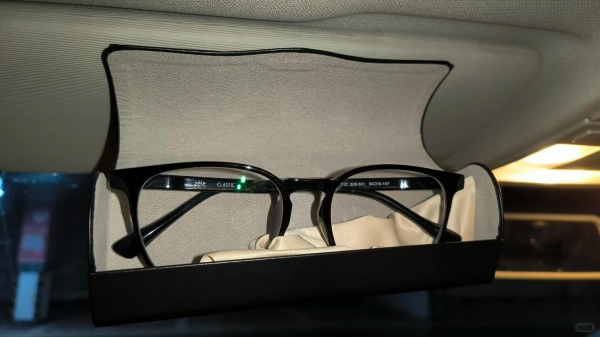 用纳米胶将眼镜盒固定在车顶合适的位置上,可以放眼镜,墨镜,很稳固,方便使用。