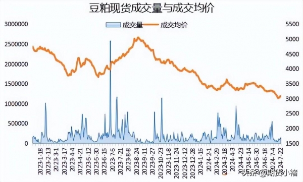 大家知道国内豆粕价格主要受美豆走势以及国内供需形势两方面影响,国际方面,近一个月来,美国降雨充沛,大豆优良率回升,美豆价格大幅下跌;国内方面,6月中旬以来,豆粕库存持续增加,价格持续下跌。其中期货2409合约累计下跌近500元/吨,现货价格下跌350~400元/吨。据了解,近期市场持续看空的心态有所松动部分企业考虑8月份逐步增加备货。