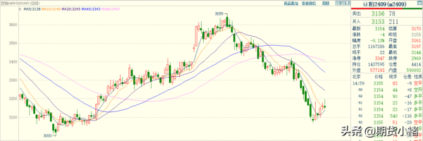 虽然周二冲高回落,冲击3200关口失利,略微收跌,但是从技术角度分析,经过前期疯狂回落,下方存在较强支撑,近日处于反弹的小阶段。伴随着美豆的筑底反弹,国内豆粕下方支撑十分强劲,市场情绪已经发生改变,仍将继续反弹上涨!