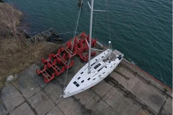 停泊于德国德兰斯克附近干船坞的"仙女座"号游艇。