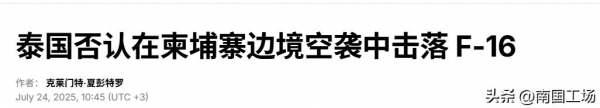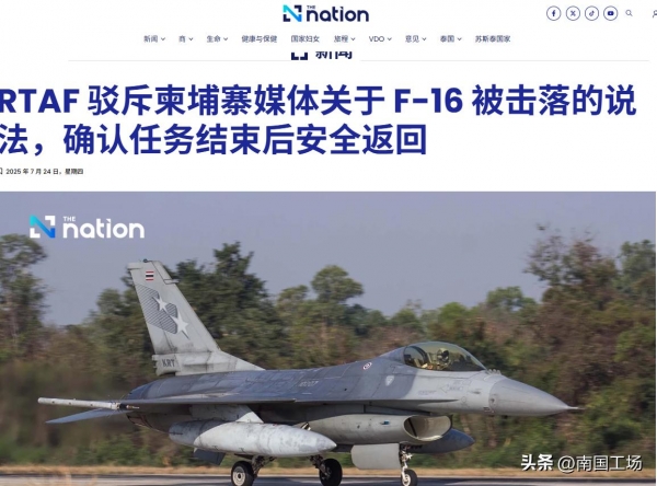 对于柬埔寨方面传出,"柬埔寨防空部队使用中国制造的KS-1C,凯山防空导弹击落一架泰国空军F-16战斗机的说法",泰国空军进行了驳斥,否认了柬埔寨媒体关于F-16战斗机被击落的说法,确认任务结束后,6架泰国空军F-16战斗机全部安全返回。泰国空军在当地时间7月24日进行了回应,泰国空军表示,柬埔寨媒体声称泰国空军F-16战斗机在当天早些时候被击落的报道"完全不真实",泰国空军敦促公众只,依靠可靠的新闻来源来获取最新信息。