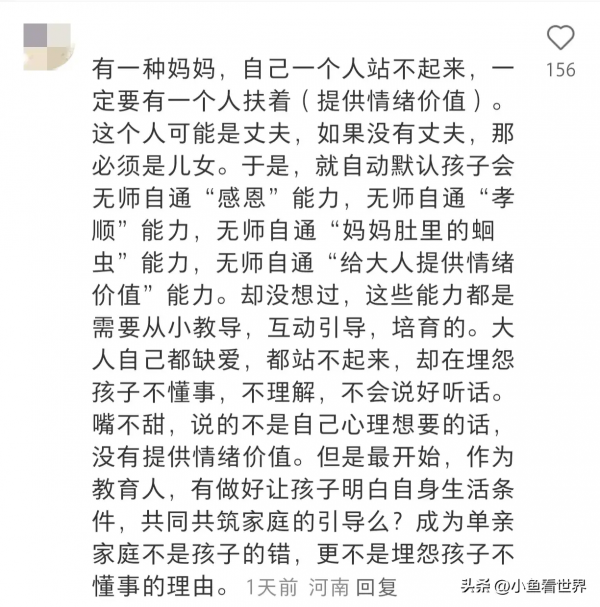 近日看到一篇妈妈的吐槽帖子题目是"儿子抱怨中年失业单亲妈妈"。