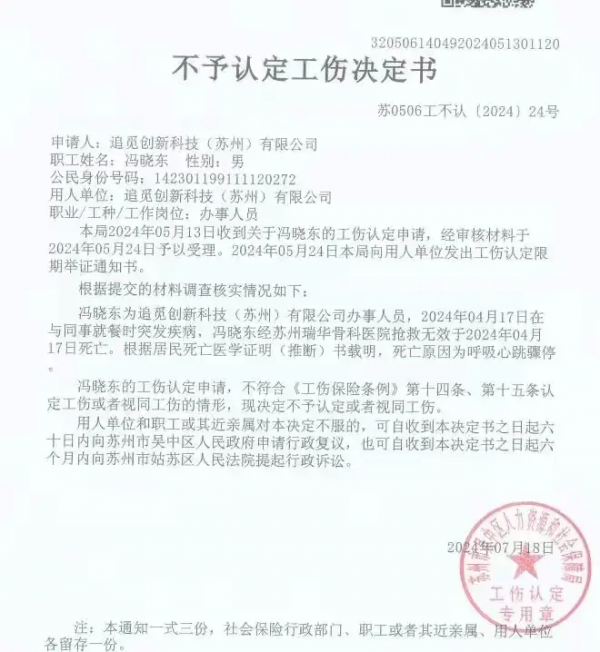 7月30日,妻子万女士告诉华商报大风新闻记者,丈夫冯晓东西北工业大学毕业,2023年8月进入追觅创新科技(苏州)有限公司,受聘PQE经理(品质经理)岗位,在研发中心工作,"他是经理级的品质工程师。"