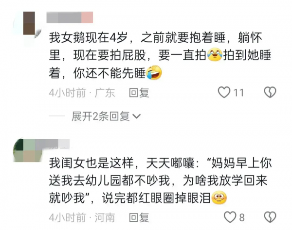 也有网友提出,代入一下小女孩的感受,那种妈妈不再像小时候一样哄她带来的强烈落差感,就像天塌了一样,小孩其实心里明白,所以才哭着要求妈妈用心哄。