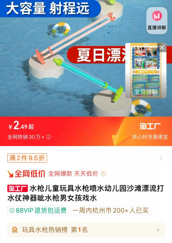 漫长的夏天是玩水的季节,也是澄海人加班加点的季节。"玩具之都"澄海每个季节都会有爆款,全国甚至全球的水枪,大多来自这里的一座座工厂。陈清环是汕头澄海人,做了5年水枪生意,还开办了工厂。今年,他的一个水枪链接,就显示全网热销超30万。
