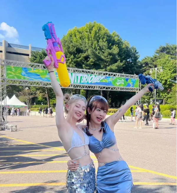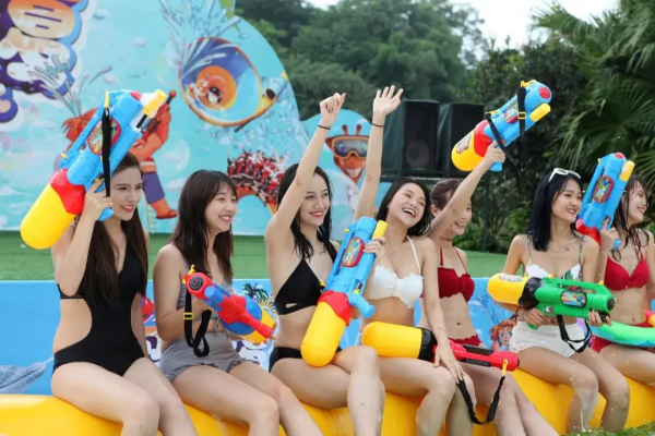在社交媒体上,有超40万份话题为#水枪#的笔记,水枪玩具出没在团建、泼水节、水上乐园、电音节等活动上,有人说,"夏天是充满冰淇淋和水花的季节。"曼谷的泼水节上挤满了来自世界各地手持水枪的成年人,有人选择购买更低价的夜航机票,但不会在"梦中情枪"的选择上抠抠搜搜。