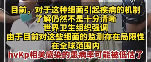目前,我们对于这种细菌引起疾病的机制仍然不是十分了解。世界卫生组织强调:"由于目前对这些细菌的监测存在局限性,在全球范围内,hvkp相关感染的患病率可能被低估了"。