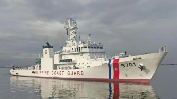 今年4月,菲律宾以所谓"确保中国不会在仙宾礁填海造岛"为借口,将9701号和4409号两艘海警巡逻船开进仙宾礁潟湖内进行锚泊联排,这两艘海警船都是菲律宾从日本购置,是目前该国最先进的海上舰船,具备完整的侦查、通讯、水下探测、直升机起降等多领域作战能力,其中9701号海警船又叫做"特里萨•马格巴努亚"号,排水量高达2200吨,是菲律宾所配备的吨位最大、设备最先进的海上执法船只,且该船还设有直升机甲板以及机库,可供直升机快速起降执行任务。