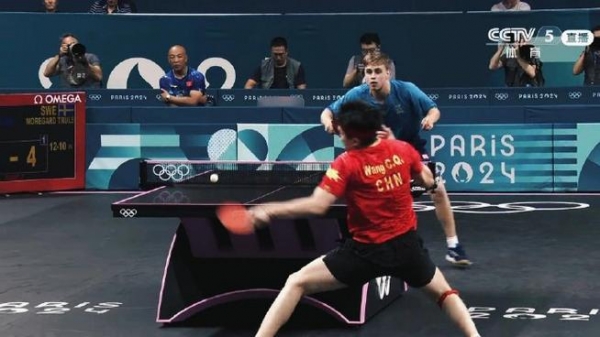 在前一天的奥运会乒乓球混双决赛中,王楚钦/孙颖莎摘得金牌。但在赛后,王楚钦的球拍被赛场内的一名摄影师踩断了。谈及此事,王楚钦说:"摄影师把板踩断了,虽然是奥运摄影师,但可能也不应该出现这样的情况。我觉得这种情况让自己有点失控,不理解为什么会这么做。但是发生了也没办法,这就是天意,用副拍也可以打比赛。"在今天的乒乓球男单32强赛比赛中,王楚钦前两局打得并不好。面对世界排名第26的瑞典选手莫雷加德,前两局结束,王楚钦大比分0比2落后,比分分别是10比12、7比11。进入第三局,王楚钦迅速调整状态,以11比5扳回一城。第四局,他再次以11比7获胜,将总比分扳成2比2平。第五局,王楚钦在后段连续追分,一度打成9比9,但随后被莫雷加德连拿2分。王楚钦总比分以2比3再次落后。再次关键的第六局,王楚钦再次告负,最终以2比4无缘16强。