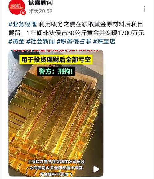 近日,上海松江区警方破获一起令人瞠目结舌的黄金盗窃案!一名女子利用职务之便,1年内疯狂盗取公司60多斤黄金,非法获利1700多万元!更让人窒息的是,这笔巨款竟被她全部投入非法理财,最终血本无归!