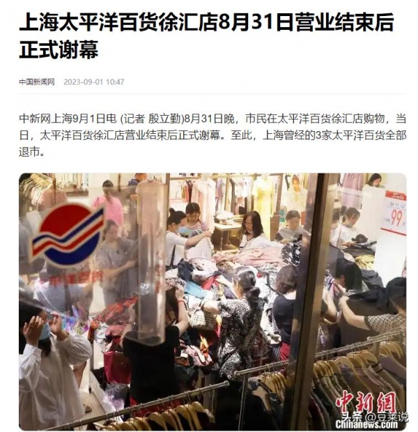 信息来源:上海太平洋百货徐汇店8月31日营业结束后正式谢幕
