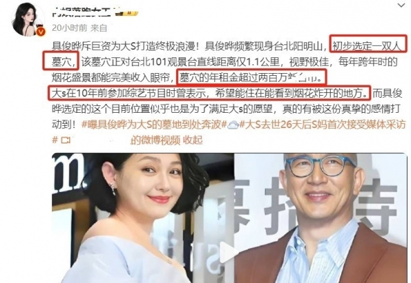 具俊晔为大S选墓地一事最近引发热议,但仔细琢磨就会发现不少蹊跷。
