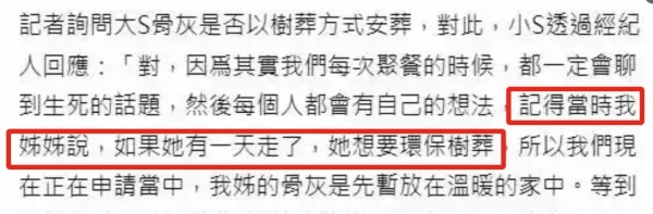 更奇怪的是,明明大S生前多次提过树葬遗愿,现在突然改成了天价墓葬,连小S都透露过姐姐确实说过想回归自然的。