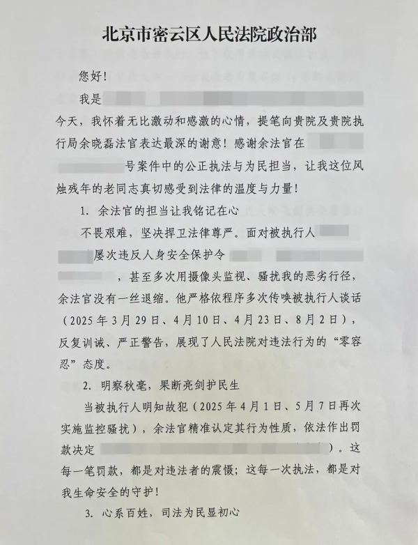 案件圆满执结后的一个清晨,刘老太特意让女儿郭晴根据自己的口述整理了一封感谢信。