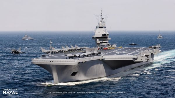 当地时间3月18日,法国总统伊曼纽尔·马克龙和武装部队部长凯瑟琳·沃特兰一同访问了建造法国海军新一代航空母舰(Porte-Avions de Nouvelle Génération,PA-NG)的海军集团(Naval Group)圣纳泽尔造船厂,马克龙在圣纳泽尔船厂发表了讲话,并正式宣布将这艘未来的新航母命名为"自由法国"(France Libre)号。
