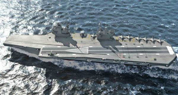 与英国合作开发的PA2方案,整体高度类似于CVF(后来的"伊丽莎白女王"级)弹射起飞版本