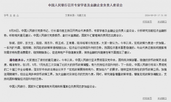另外,据央行网站,8月26日,中国人民银行党委书记、行长潘功胜主持召开两会代表委员、专家学者及金融企业负责人座谈会,其间表示,将继续坚持支持性的货币政策立场,加强逆周期调节。