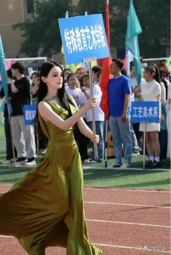 当时,她穿了一件绿色的裙子,一露面就让同学发出欢呼,她的颜值在学校里,就是校花一样的人。