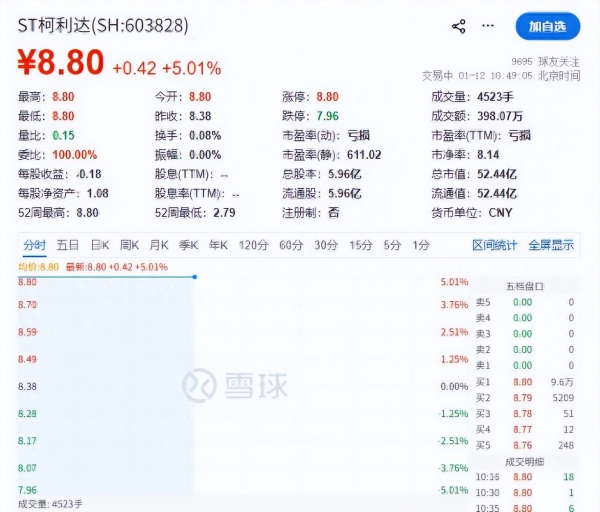 1月12日,ST柯利达复牌后一字涨停,股价冲到8.8元/股,新主人登场,股价暴涨,可这一切都与那位曾经在材料堆上眯觉的创始人无关了。