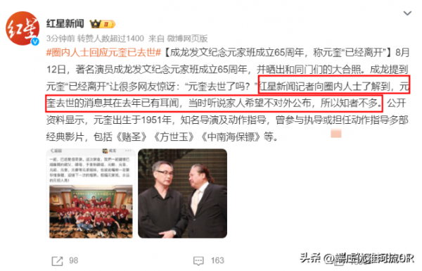 消息一出,立刻在网络上引起了轩然大波,许多网友纷纷表示不敢相信,更有不少人感叹"原来他已经离开了",在他们心中,元奎是香港电影不可或缺的一部分,他的电影陪伴了一代人的成长,他的离去,也带走了一段难忘的青春记忆。