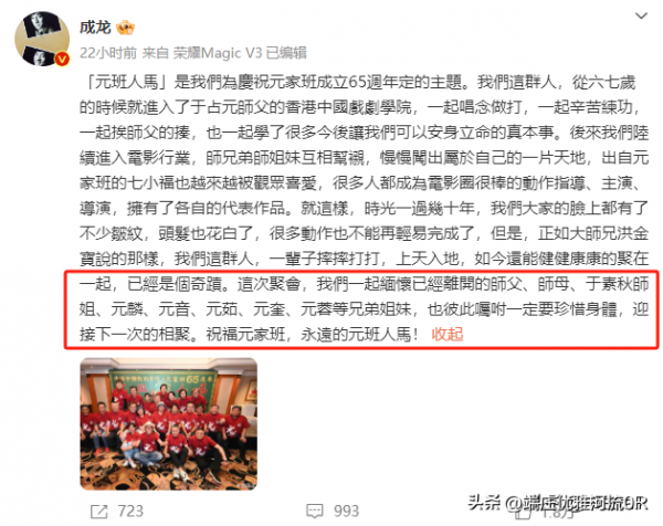 就是这样一位为香港电影做出巨大贡献的电影人,他的离世却显得格外低调,甚至鲜为人知,直到两年前,成龙在社交平台上的一篇长文中,不经意间透露了元奎已经去世的消息,才让这位幕后英雄重新回到公众的视野。