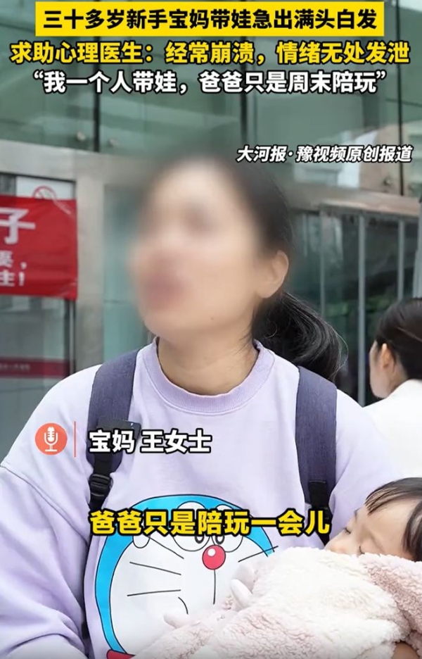王女士介绍,一开始自己也不明白,自己刚刚30岁出头,为什么头发长出这么多白发,后来意识到,这是自己带孩子的原因,没有人理解她,丈夫平时基本没什么参与感,即便周末休息带一下,孩子也是什么都找她。