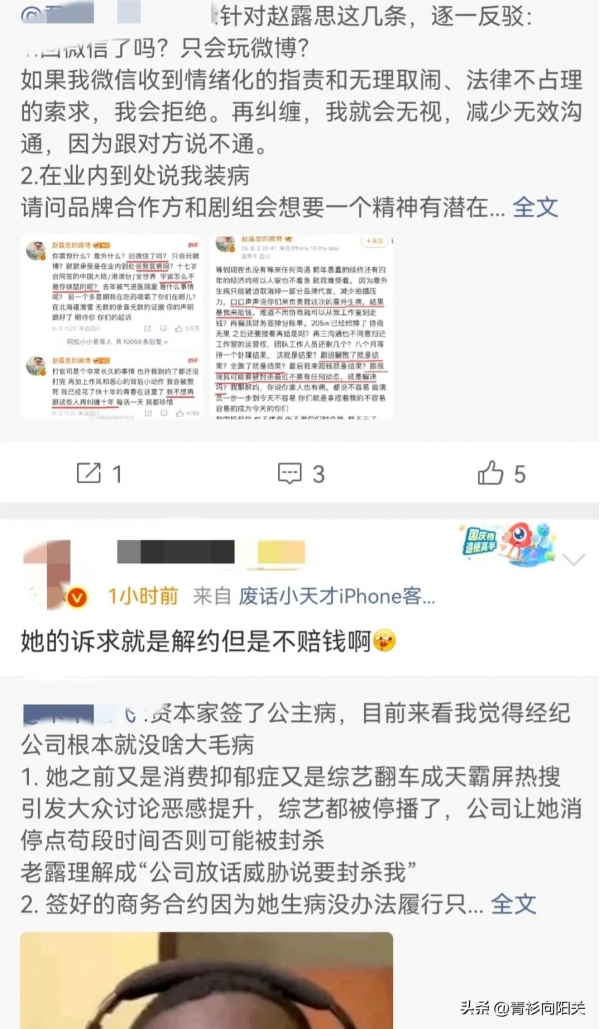 事实上,艺人跟经纪公司闹解约的不止赵露思一个,但有业内人士分析,像赵露思这样手里几乎没有底牌,妄图靠舆论战碾压的是第一个。