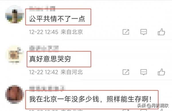 面对网友"几十万已经很高了"的留言,闫学晶皱着眉头叹道:"你不知道北京的消费啊"。