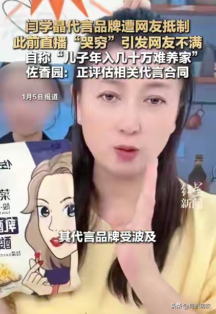 她的这段"哭穷"言论很快引发网络热议,舆论迅速发酵,甚至她的品牌代言也受到冲击。